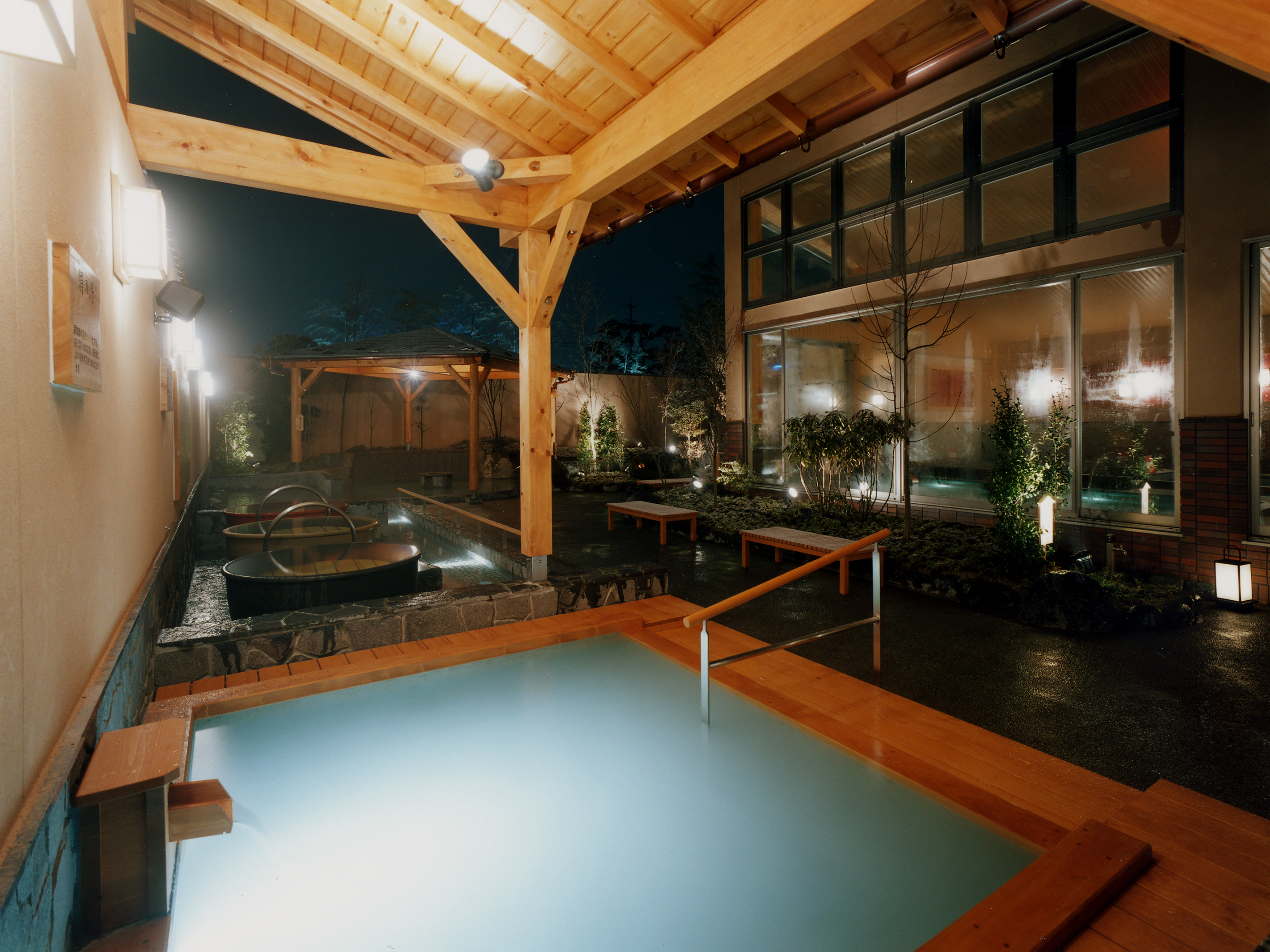 温泉无色透明,略呈碱性,是据说能温暖身体至核心的温泉。 享受温泉,同时尝试各种浴缸,洗完澡后在二楼的大厅放松身心。 你可以自带食物和饮料,营造一个放松的空间。