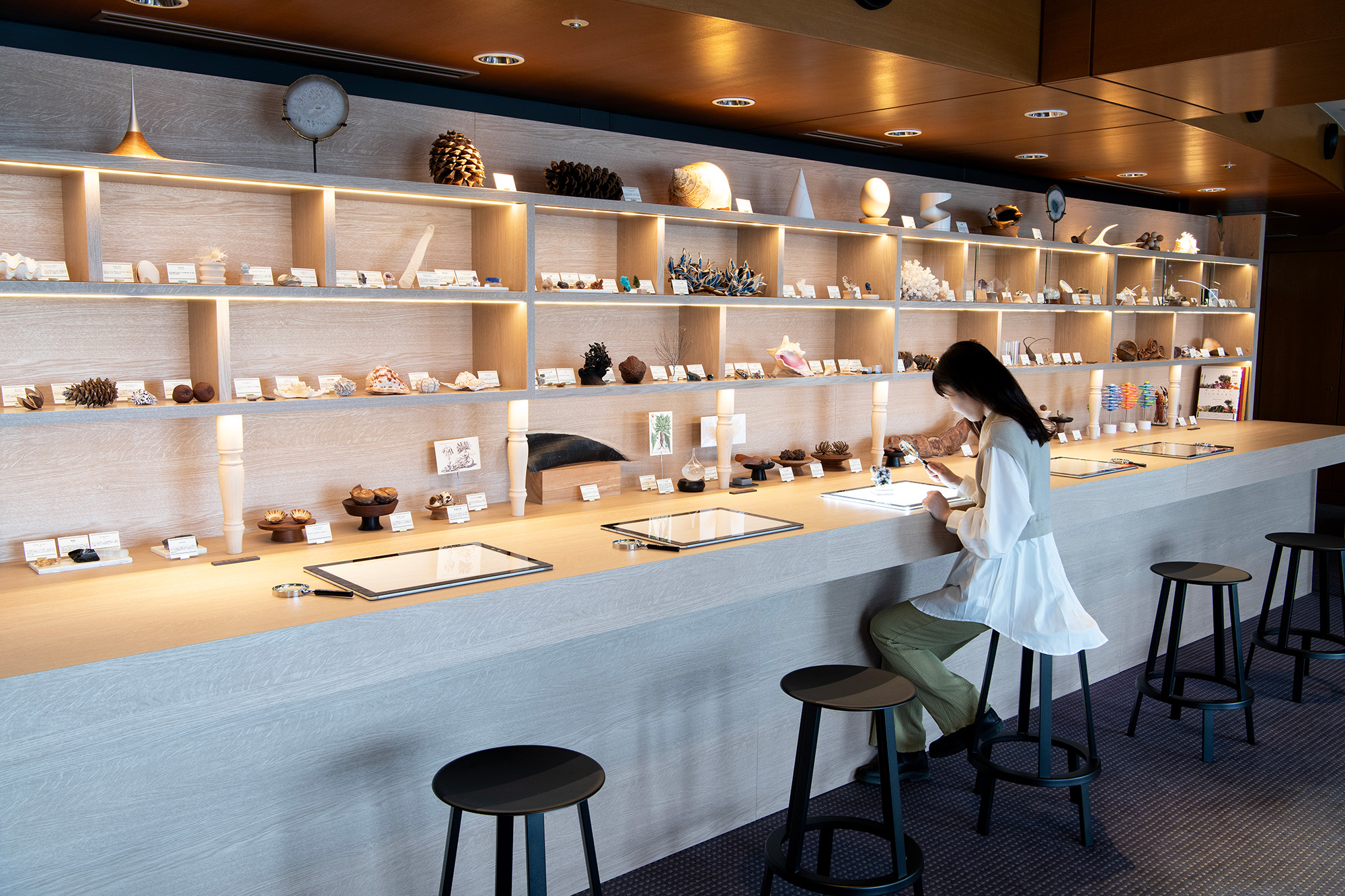 店内设有瓦屋顶和屋檐灯,灵感来自江户时代的街道景观,房屋相对而建
